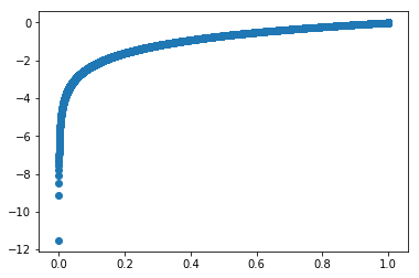 (1-y) * np.log(1-h) # y = 0인 데이터의 오차
