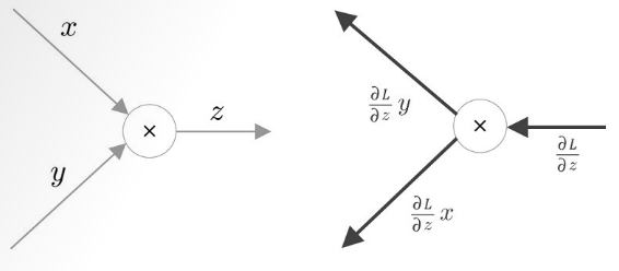 * 역전파 : 데이터(기울기)를 순전파와는 반대 방향으로 전파