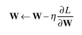 - 위 식에서 갱신하는 가중치 매개변수가 W이고, W에 대한 손실 함수의 기울기가 ∂L/∂W 이며 n에타는 학습률을 나타냅니다. 실제로는 0.01이나 0.001 같은 값을 미리 정하고 사용합니다.