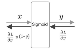 - 출력 쪽 계층으로부터 전해진 기울기 (∂L/∂y)에 시그모이드 함수의 미분 (∂y/∂x),즉y(1-y)를 곱하고,