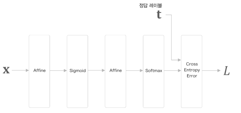 ( Sigmoid계층, 완전연결계층의 Affine 계층, Softmax with Loss 계층을 구현)