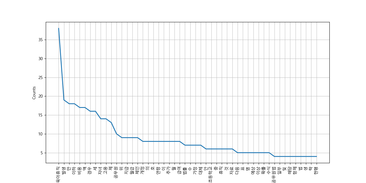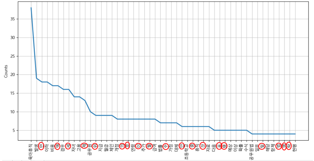 # 위 그래프의 출력 결과를 보고, 불필요한 stopwords 등록해서 제거한다,