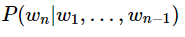 n-1개의 단어가 나열된 상태에서 n번째 단어의 확률은 다음과 같다.