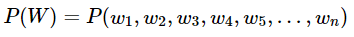 n개의 단어가 등장하는 단어 시퀀스 W의 확률은 다음과 같다.